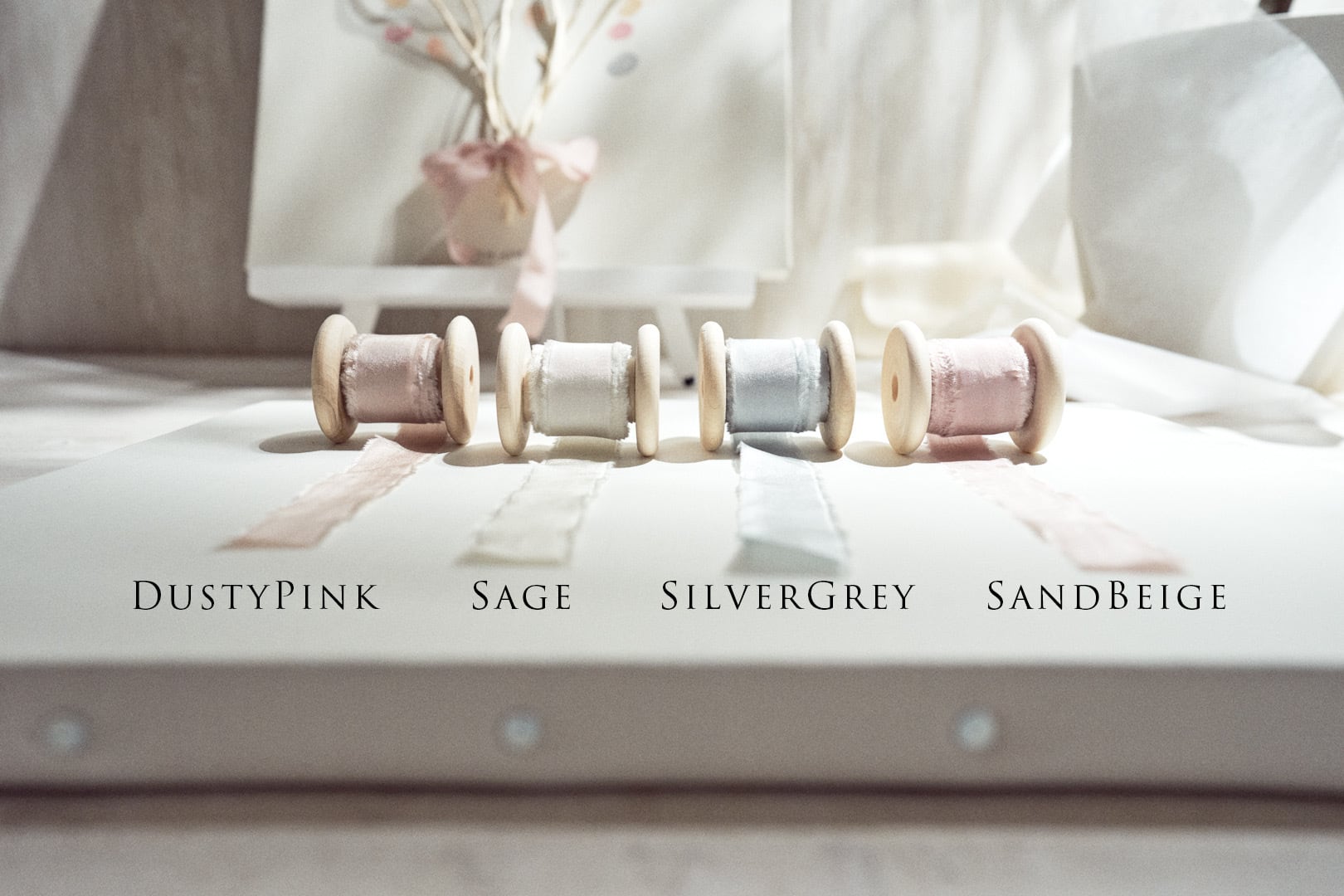 ◼️高級シルクリボンは4色からお選びいただけます。色で雰囲気が大きく変わります!